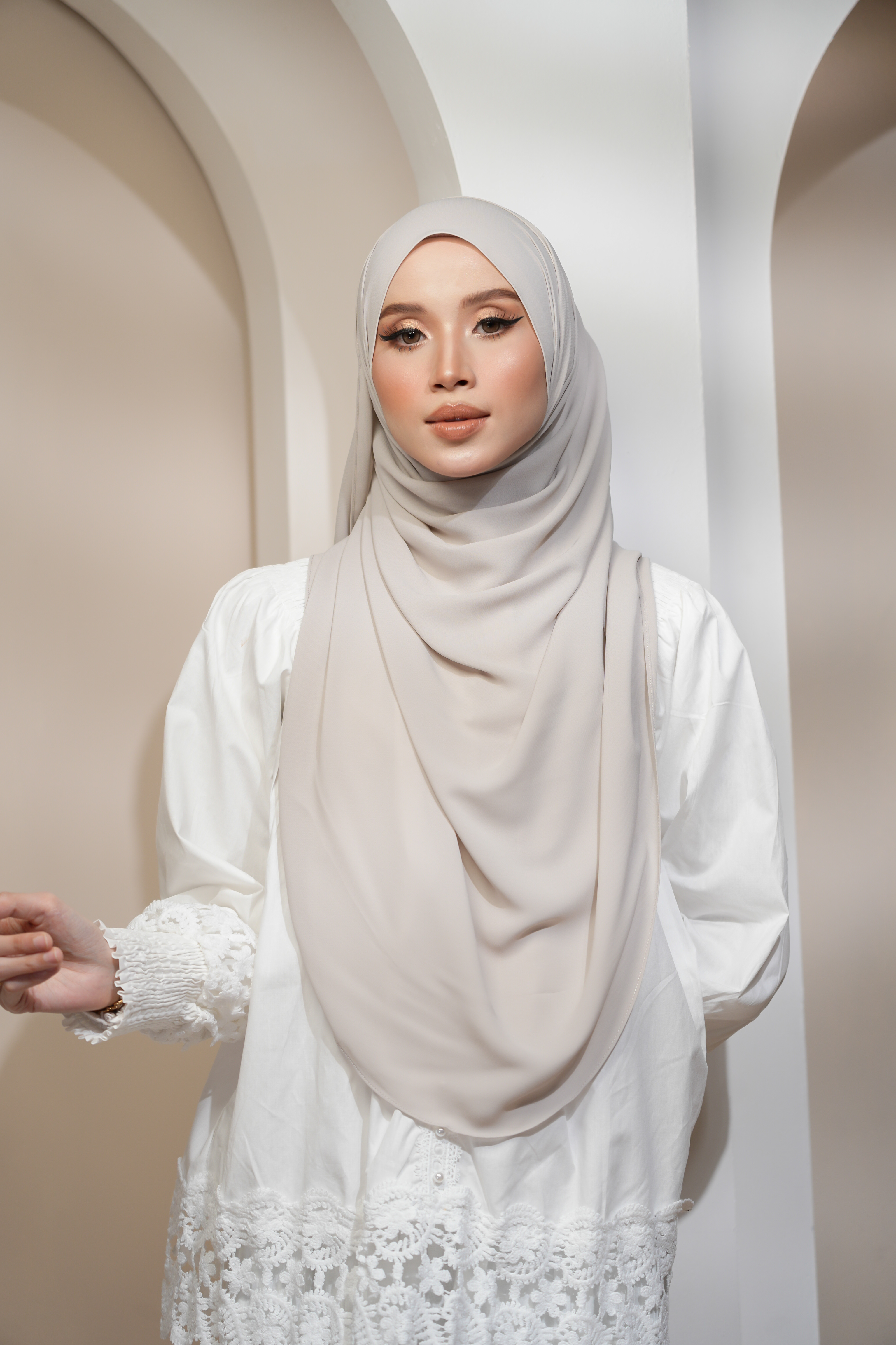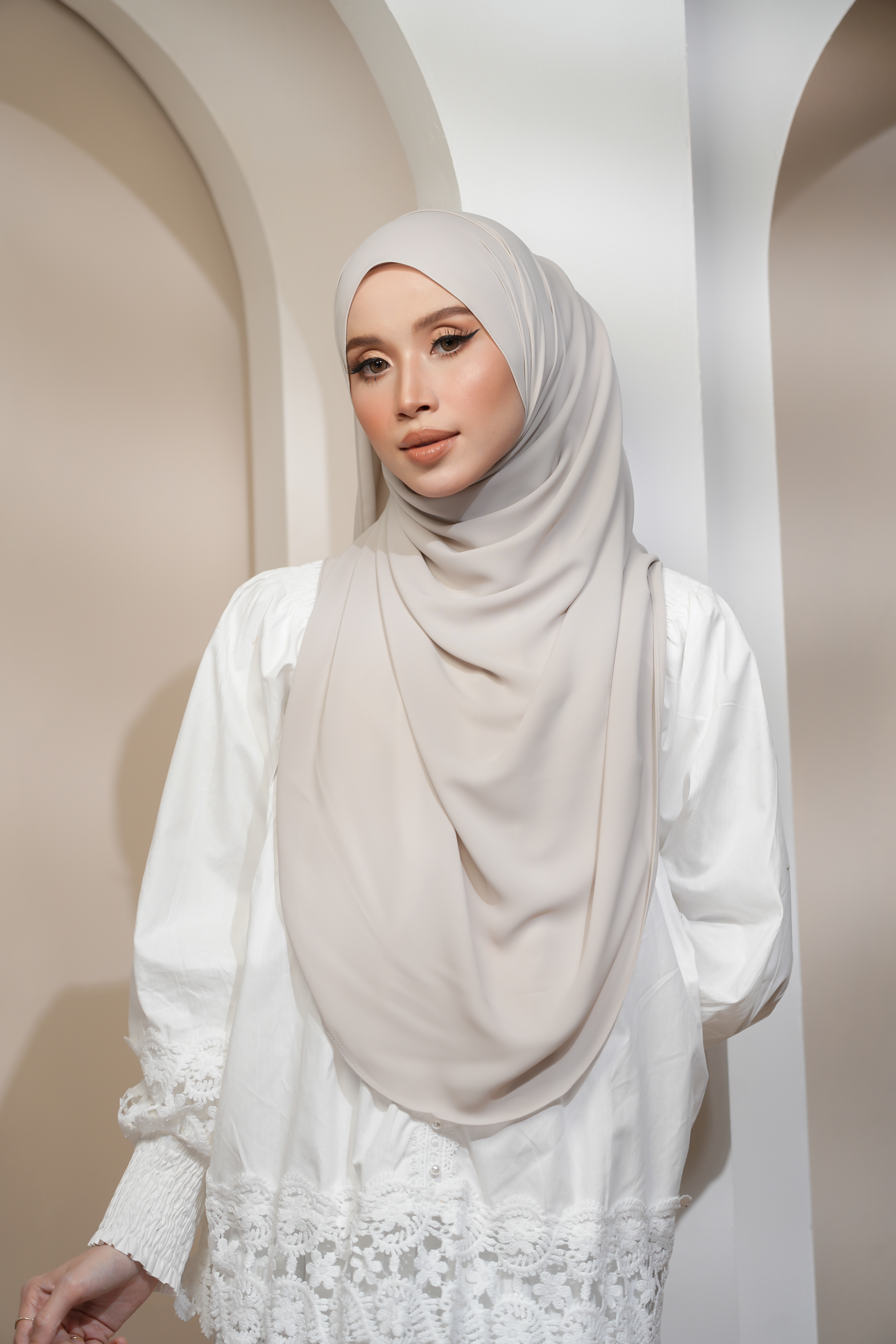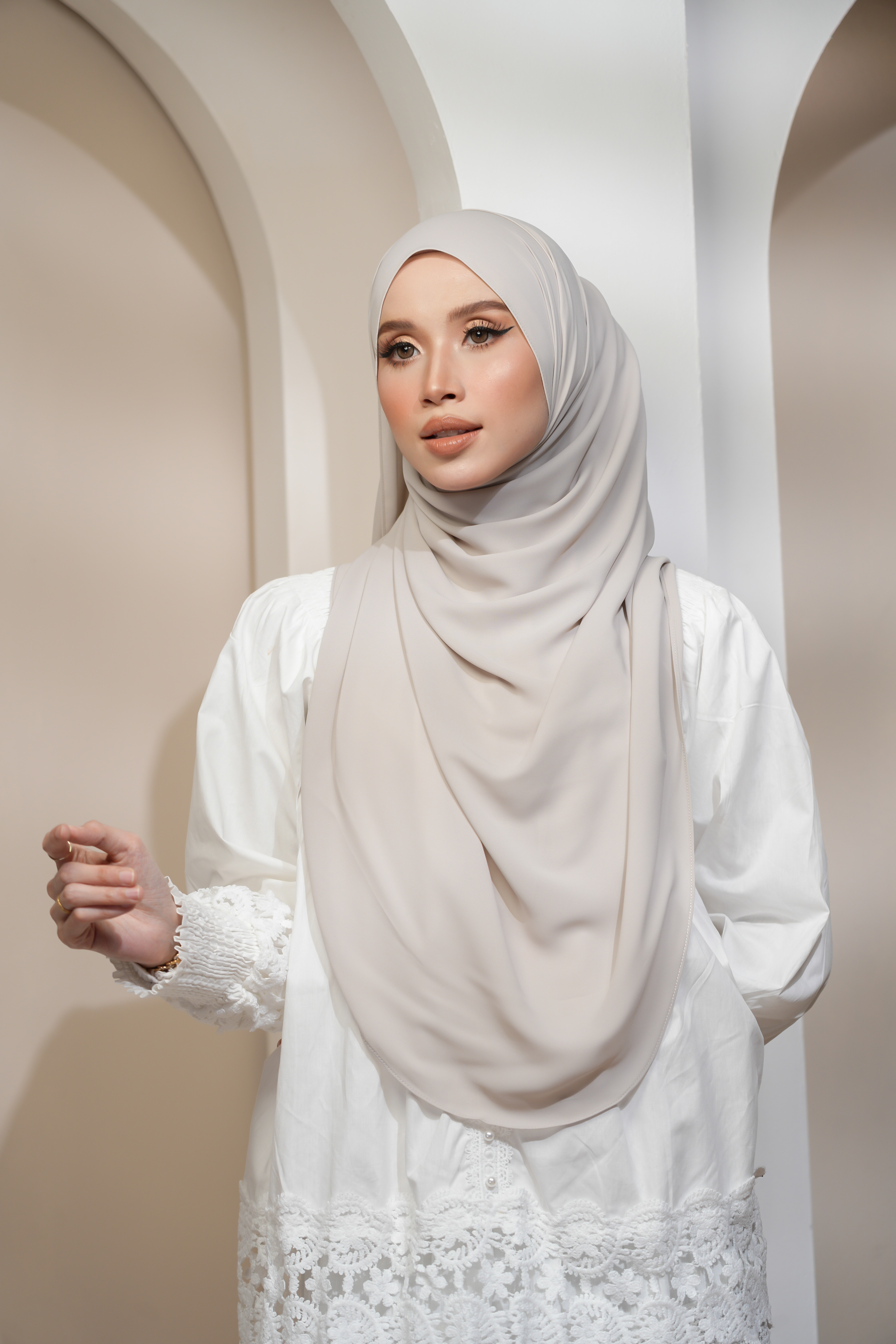 Airy Bawal Selapis – Koleksi Eksklusif NENAHIJABS. Material: Premium Diamond Chiffon. Saiz: Bidang 50 (170 cm). Ketebalan: 9/10. Tersedia dalam 64 warna eksklusif. Dihiasi dengan logam pesona eksklusif NENAHIJABS di hujung tudung.