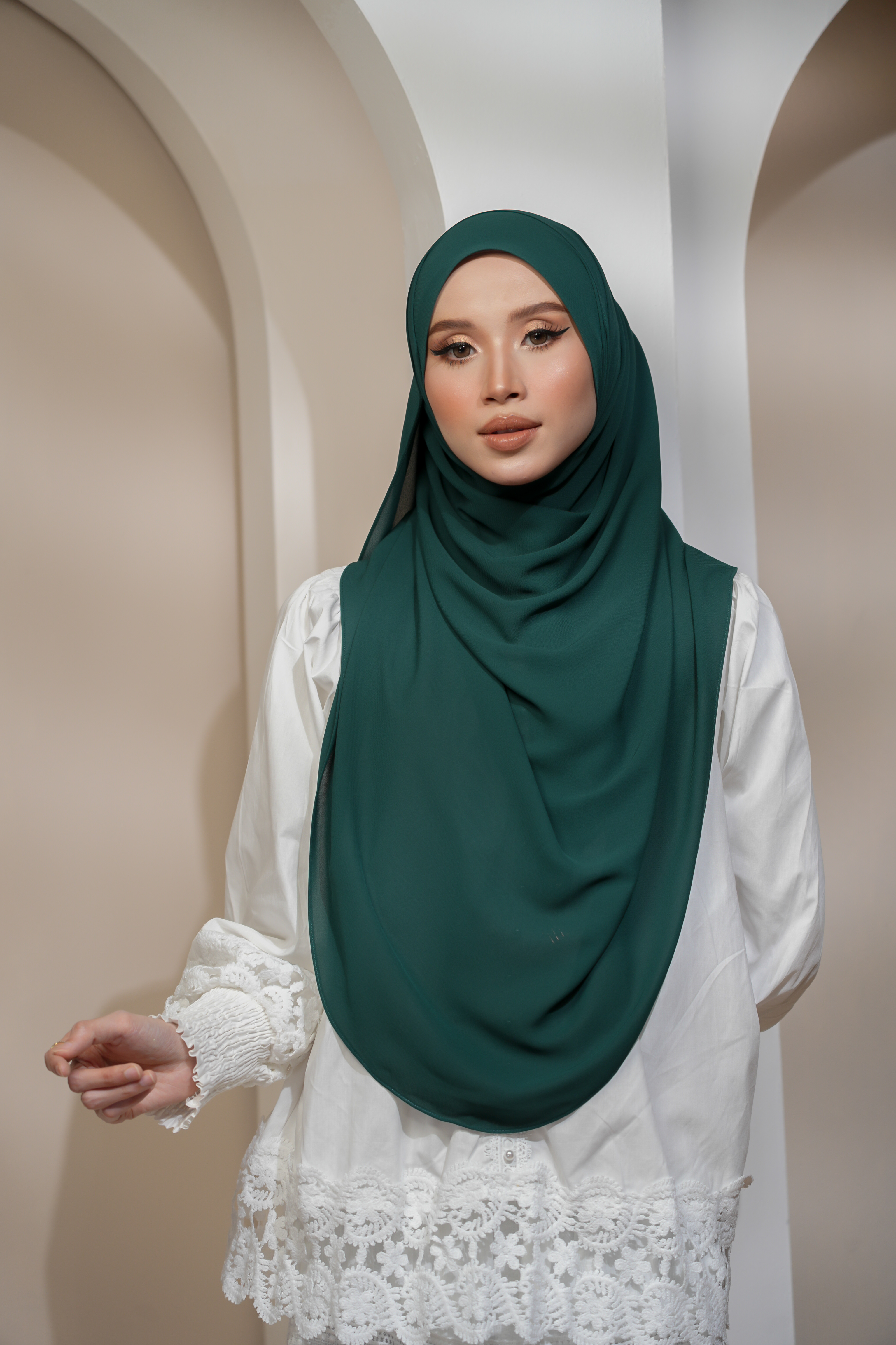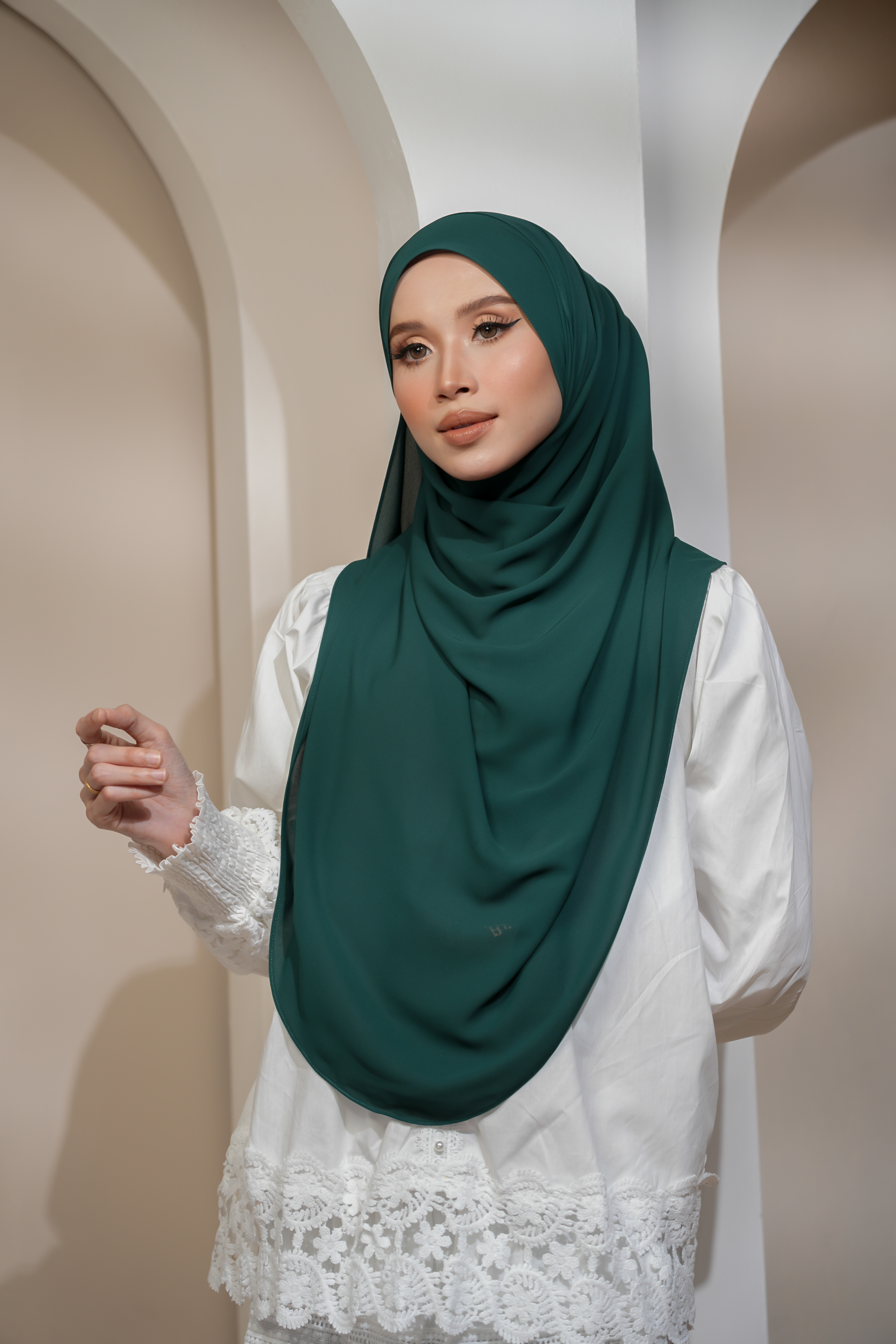 • Perfectly Draping: Fabrik lembut dan ringan yang menjadikan bawal ini jatuh terletak dengan sempurna di bahu.