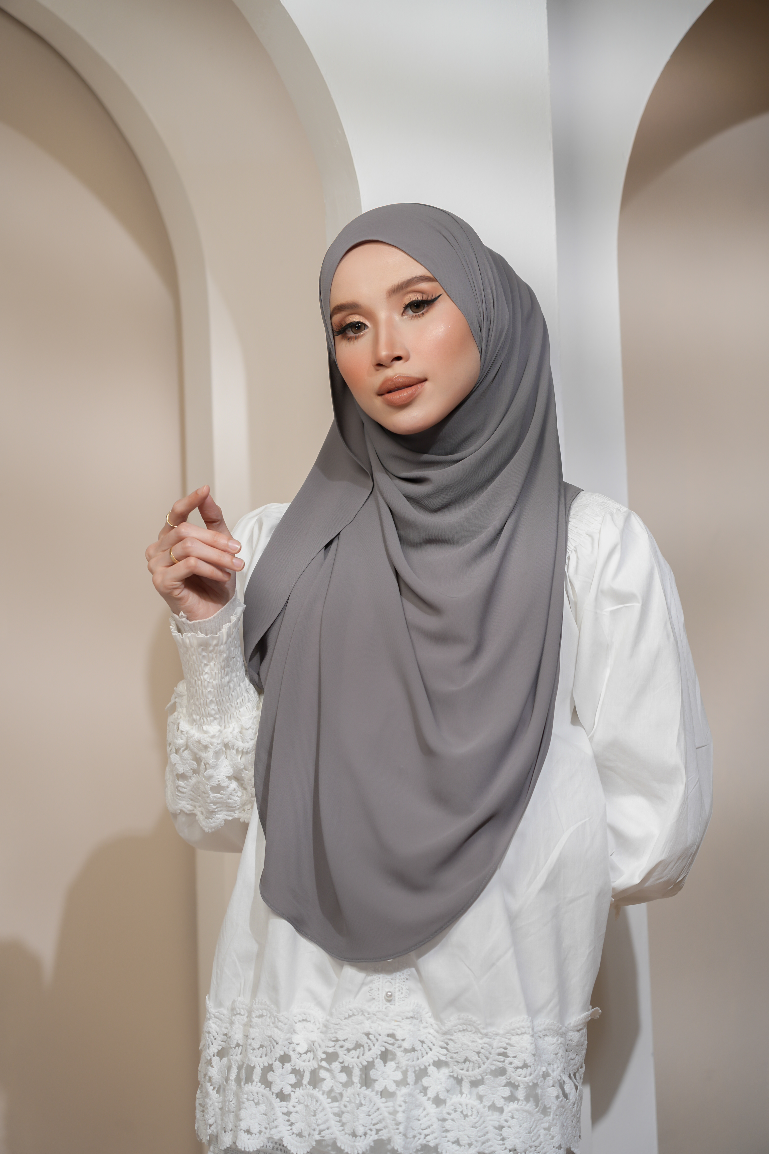 • Perfectly Draping: Fabrik lembut dan ringan yang menjadikan bawal ini jatuh terletak dengan sempurna di bahu.