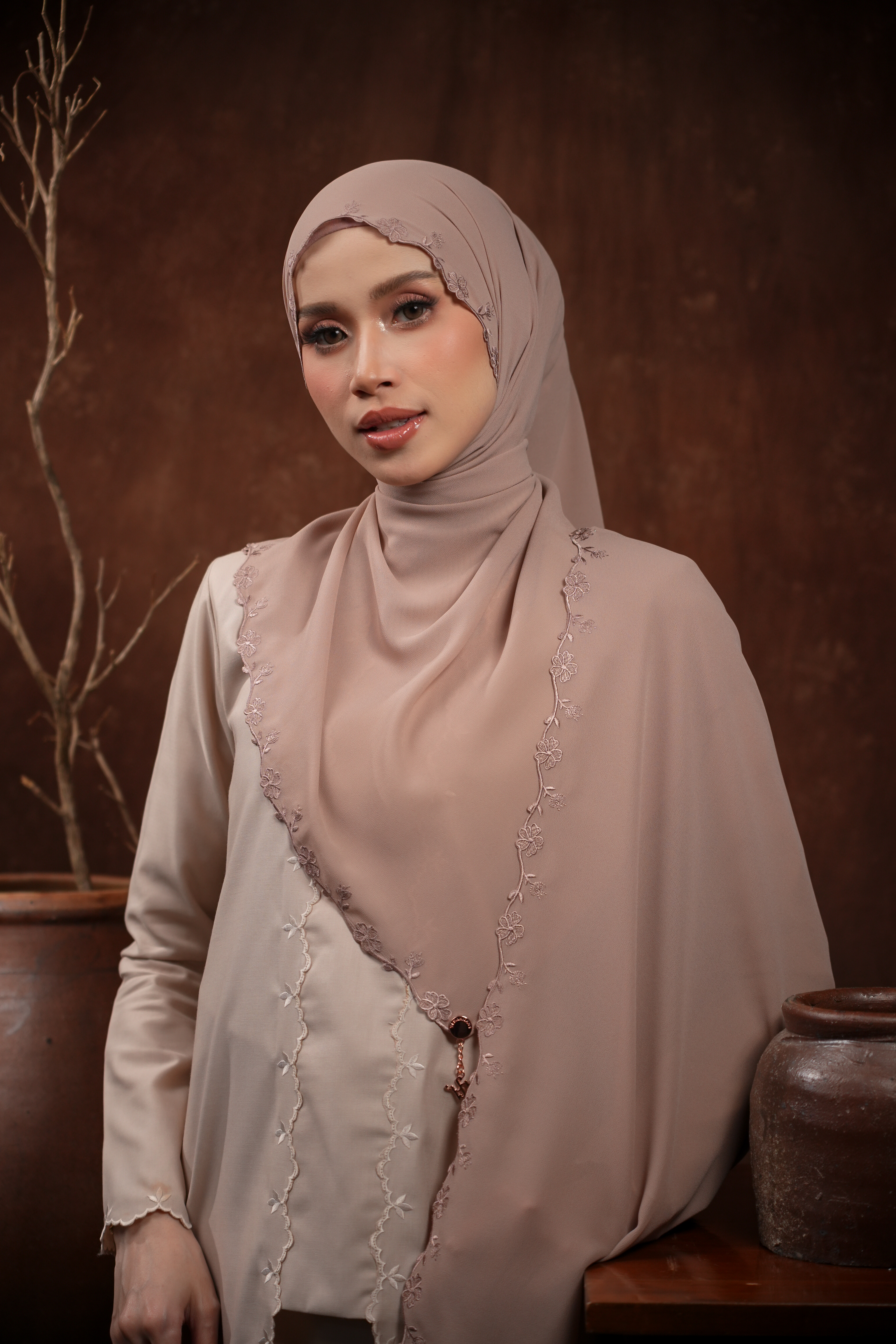Our Beautiful Widuri Sulam Shawl is made of Premium Soft Chiffon featured with embroidered throughout the baby seam. Perfectly and neatly.