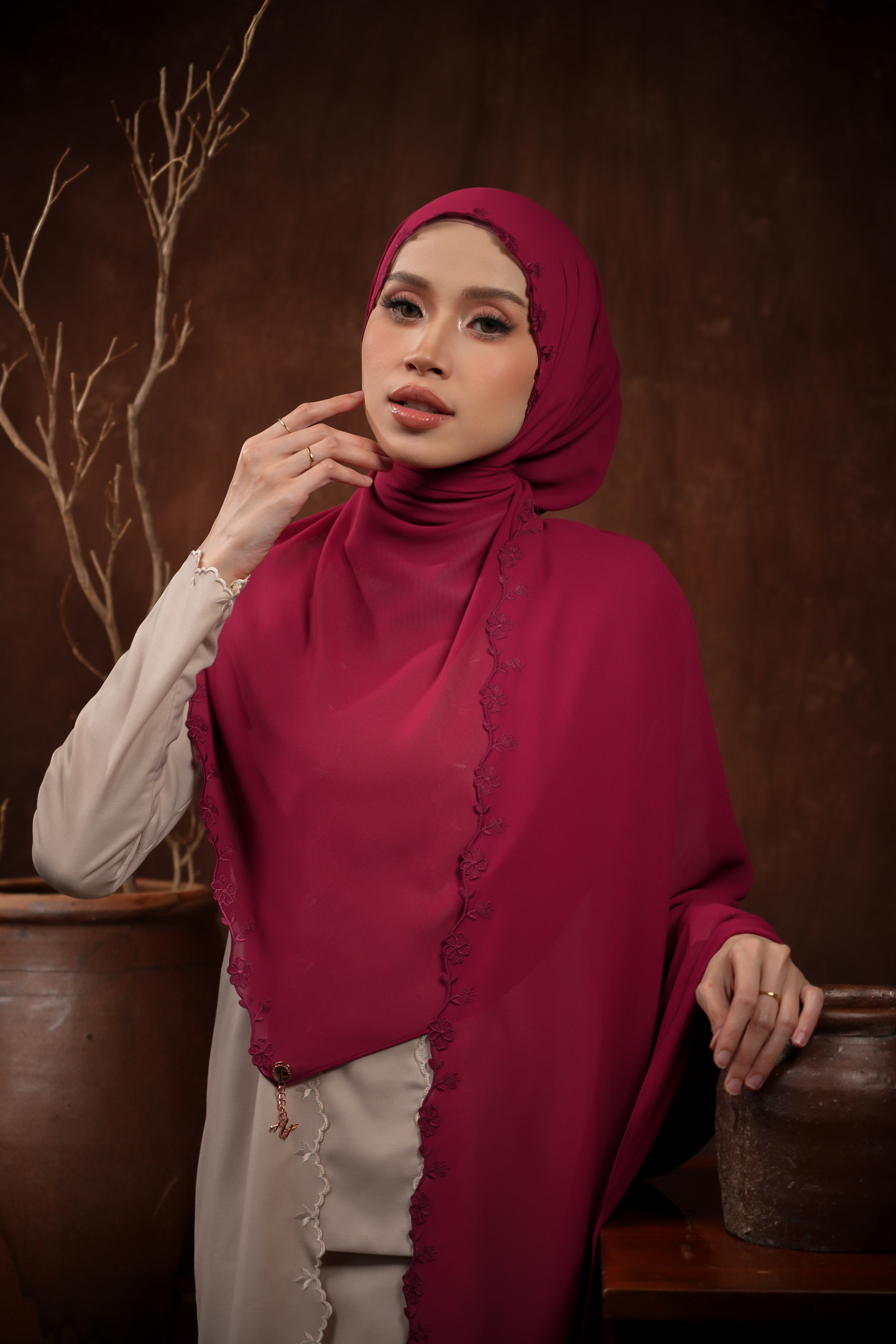 Our Beautiful Widuri Sulam Shawl is made of Premium Soft Chiffon featured with embroidered throughout the baby seam. Perfectly and neatly.
