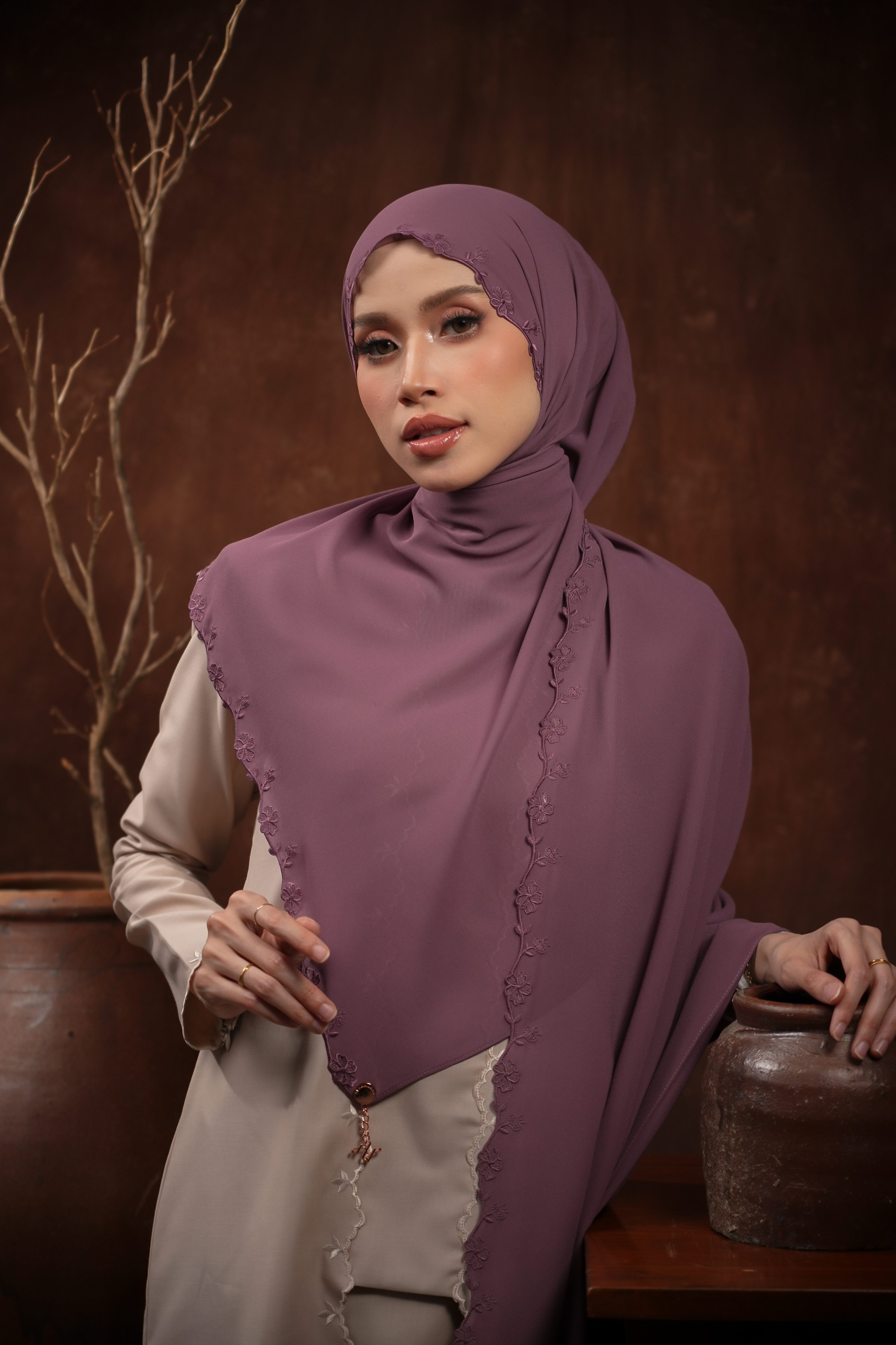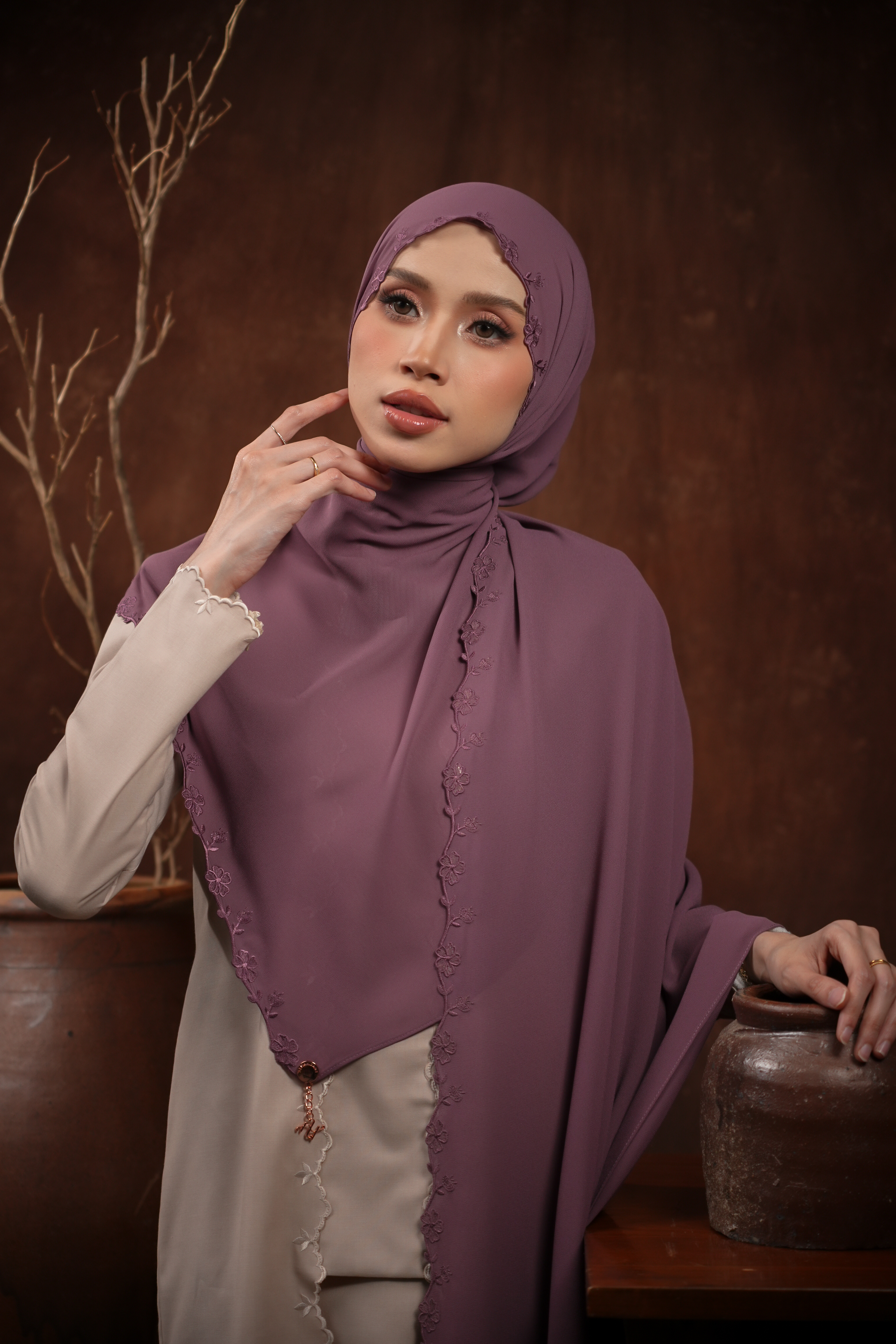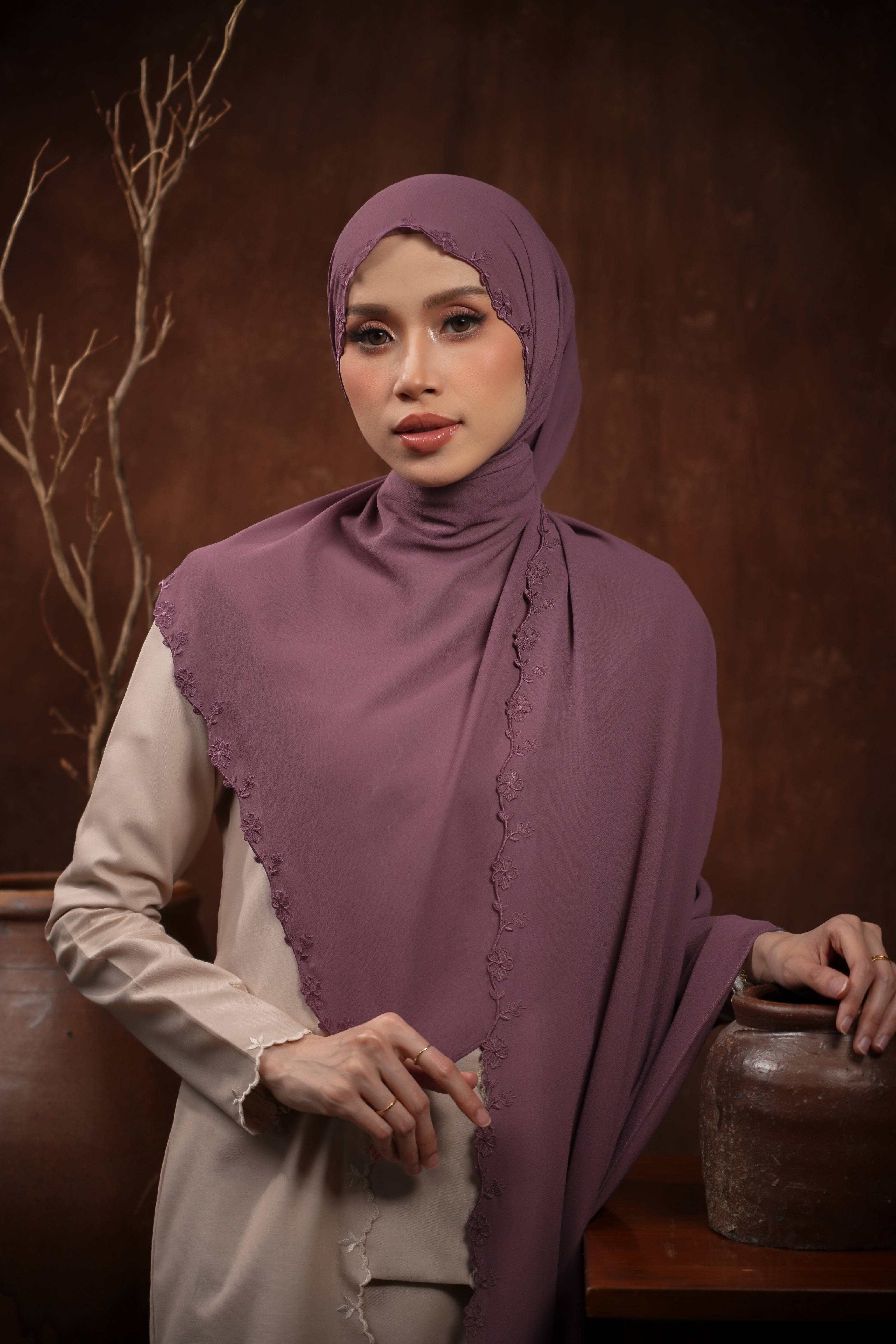 Our Beautiful Widuri Sulam Shawl is made of Premium Soft Chiffon featured with embroidered throughout the baby seam. Perfectly and neatly.