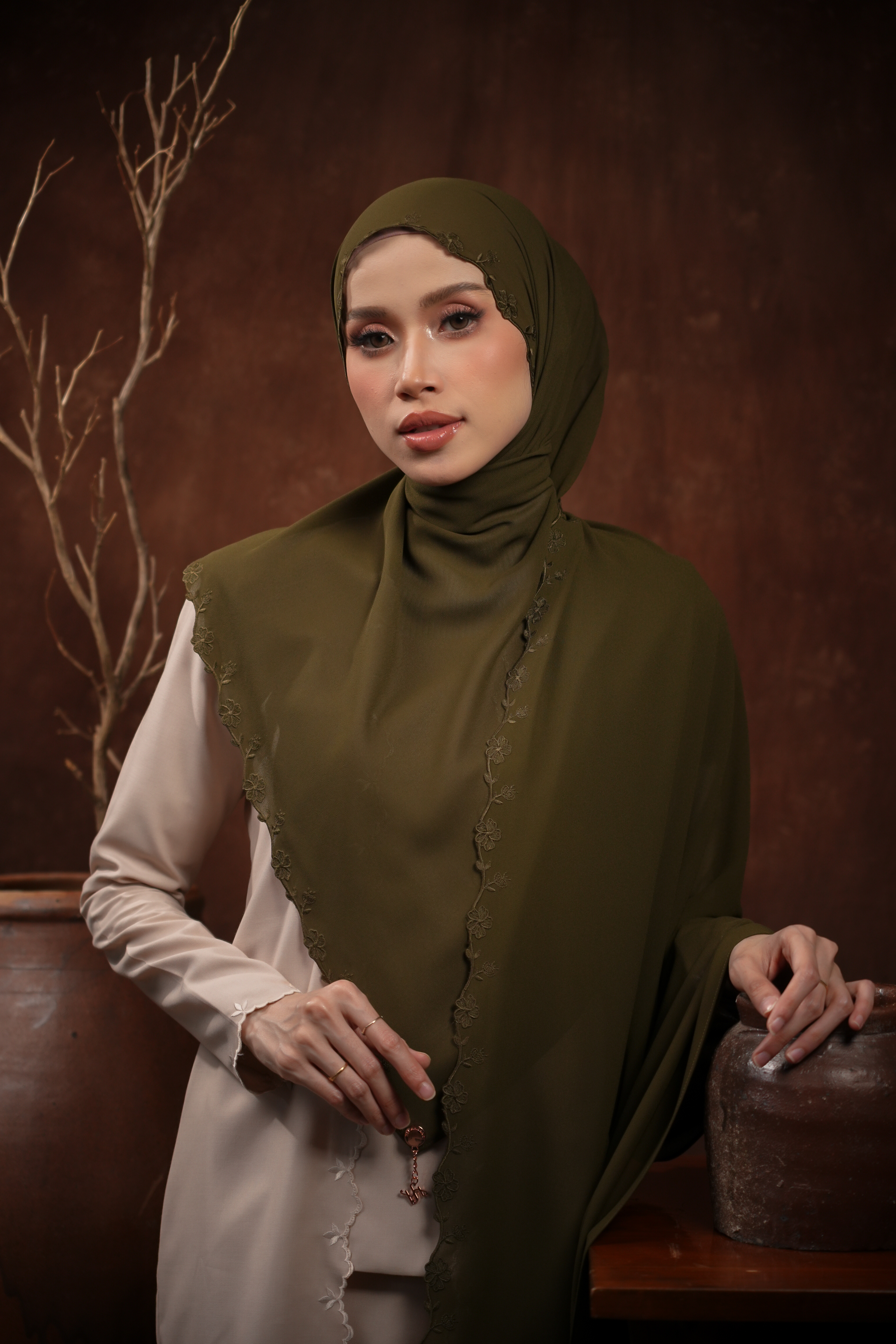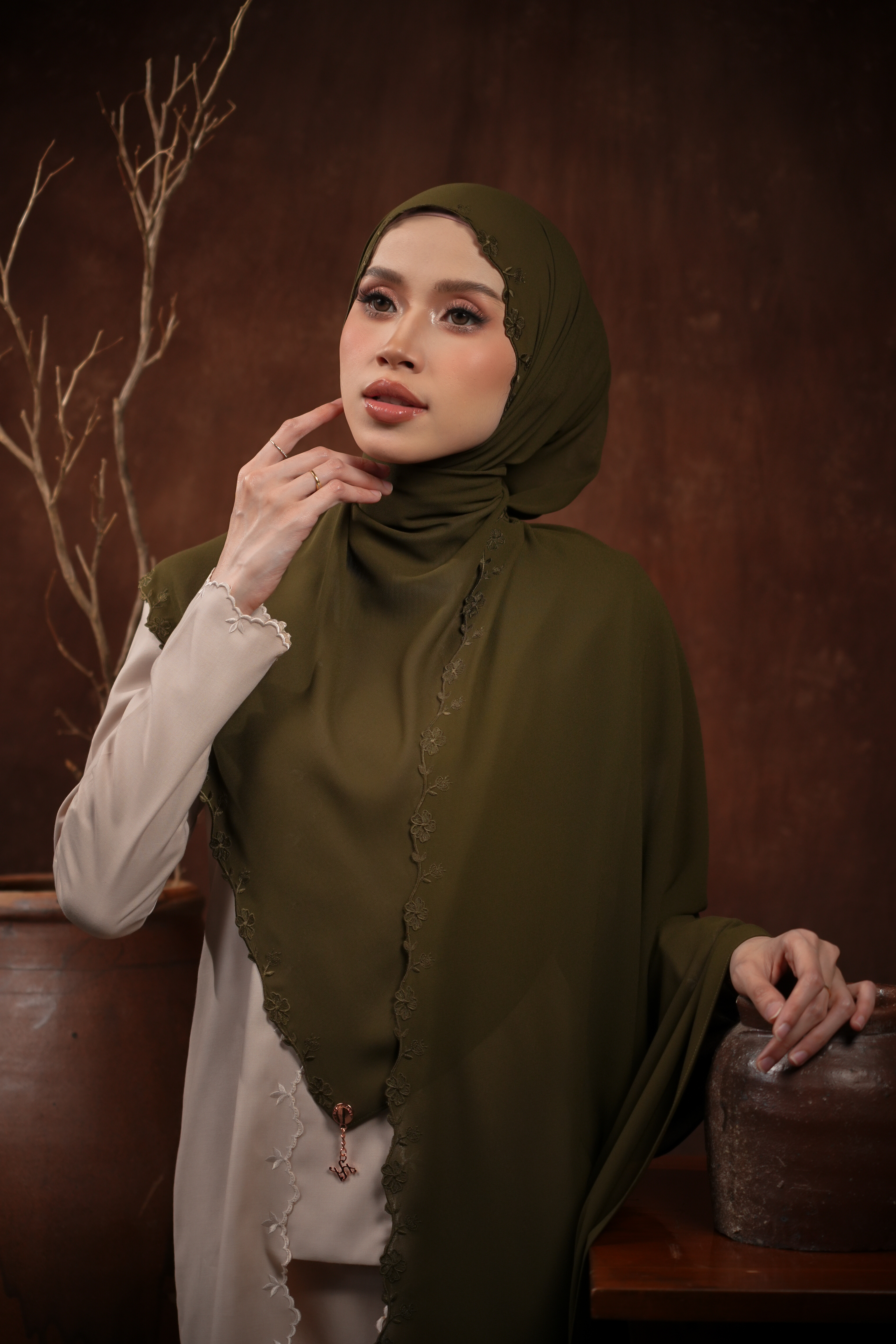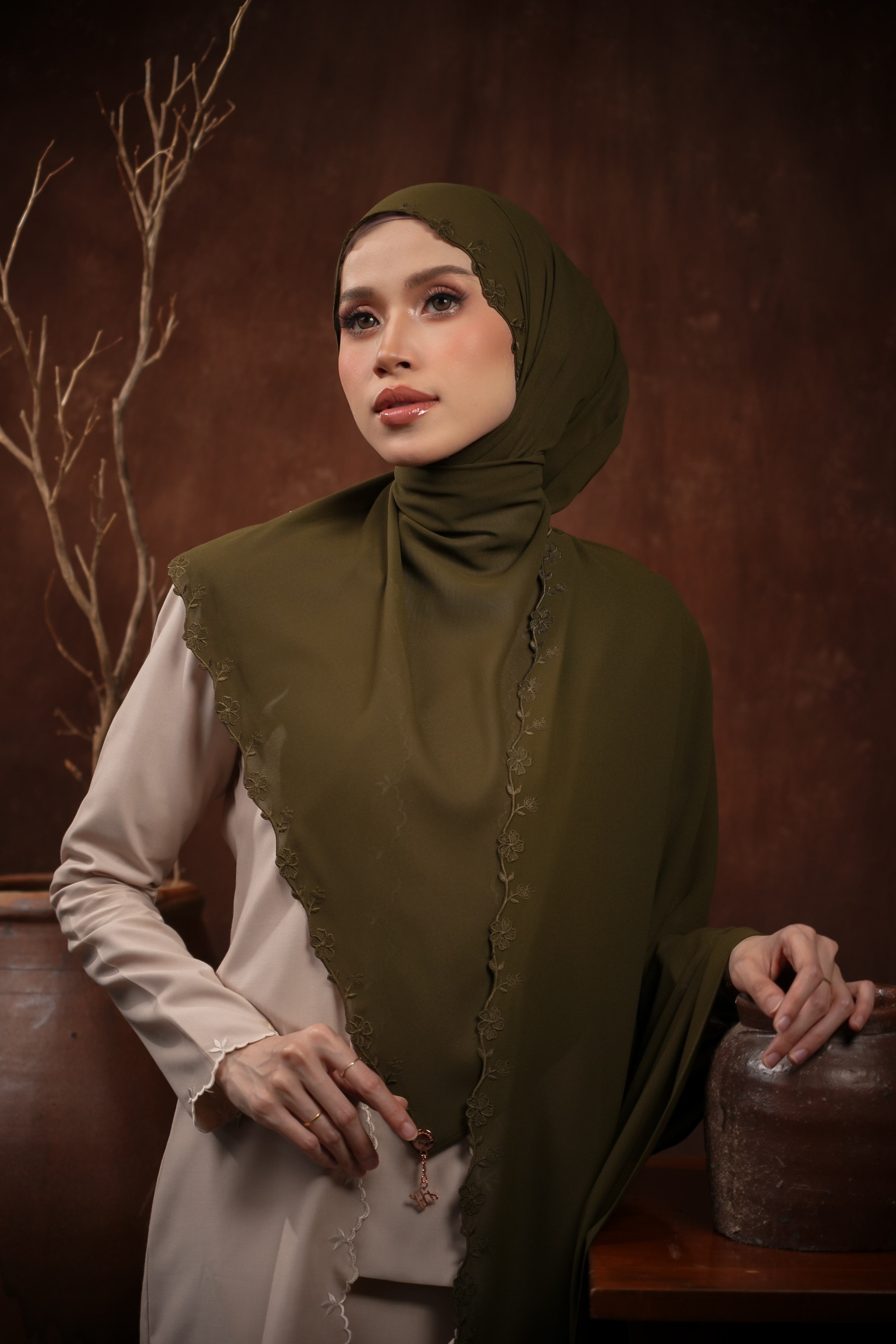 Our Beautiful Widuri Sulam Shawl is made of Premium Soft Chiffon featured with embroidered throughout the baby seam. Perfectly and neatly.